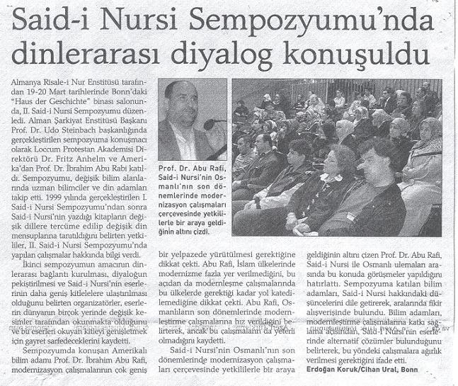 Presseberichte vom II. Symposion 2004: Das Buch zum Symposium: Dietrich Bonhoeffer, Alfred Delp und Said Nursi: Christentum und Islam im Gegenüber zu den Totalitarismen. Christentum und Islam im Dialog. ISBN nr. 3-8258-80-89-3